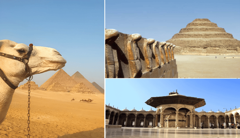 Nearby, the iconic Giza Pyramids and Saqqara's step pyramid showcase Egypt's ancient legacy.Despite its deep historical roots, Cairo is a lively modern city, centered around Tahrir Square and the Corniche, home to key attractions and government buildings..